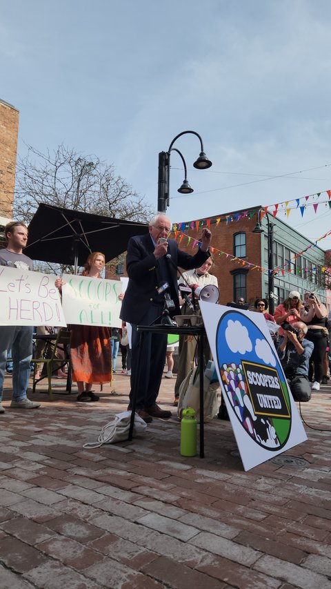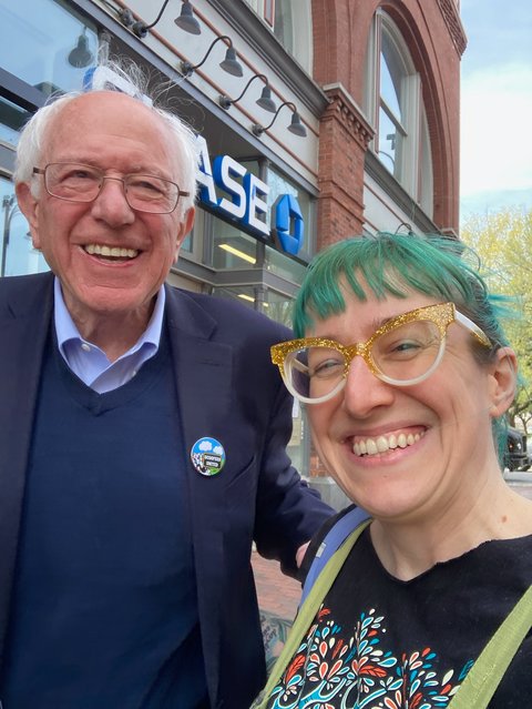 April 2023 - The highlight of the New England States Conference in Burlington was getting to see Bernie Sanders! First he spoke at a rally in support of the new Ben & Jerry's employee union, Scoopers United; then he came to our conference as a guest speaker! We took notes almost as colorful as the views and other Maine delegates chatted with local USPS employees about our shared labor concerns.