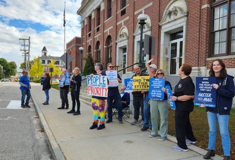 October 1, 2024 - we held a rally outside the Auburn Post Office to join in on the national Day of Action.